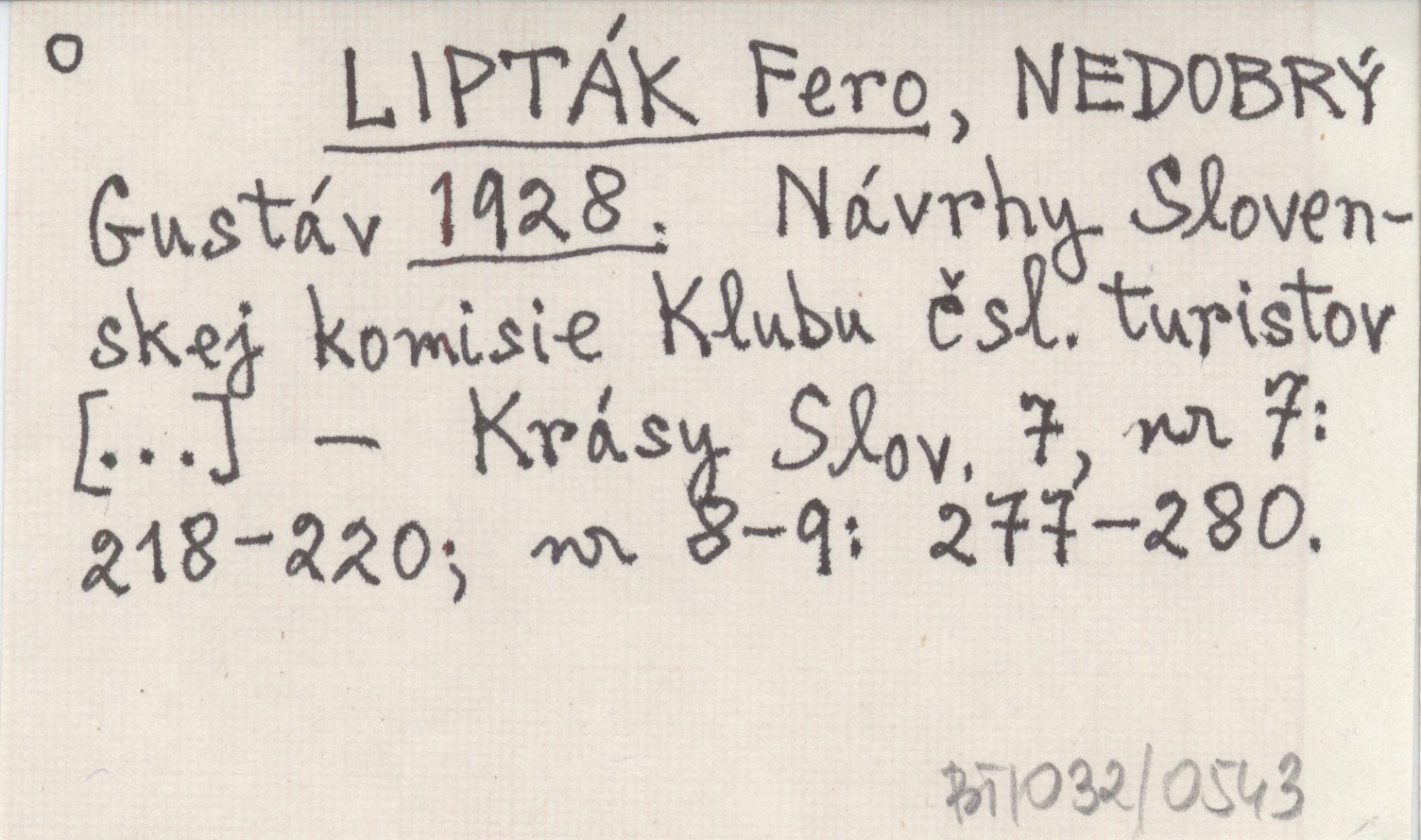 LIPTÁK Fero NEDOBRÝ, Gustáv. ; 1928 Návrhy Slovenskej komisie Klubu čsl. turistov [...].