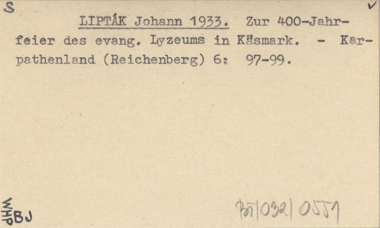 LIPTÁK Johann 1933 Zur 400-Jahrfeier des evang. Lyzeums in Käsmark.