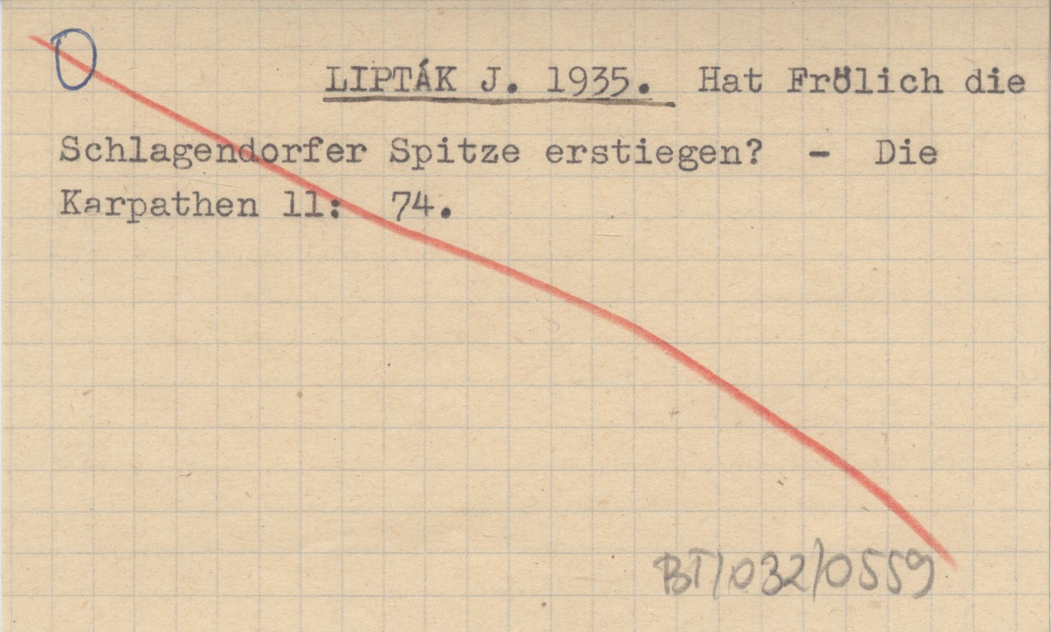 LIPTÁK J. 1935 Hat Frölich die Schlagendorfer Spitze erstiegen?