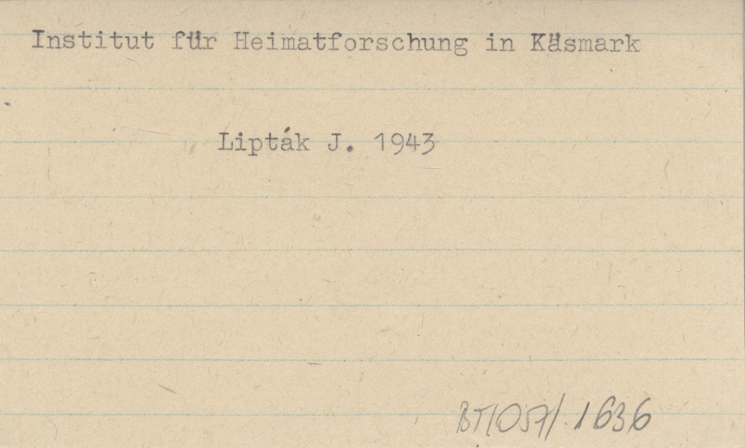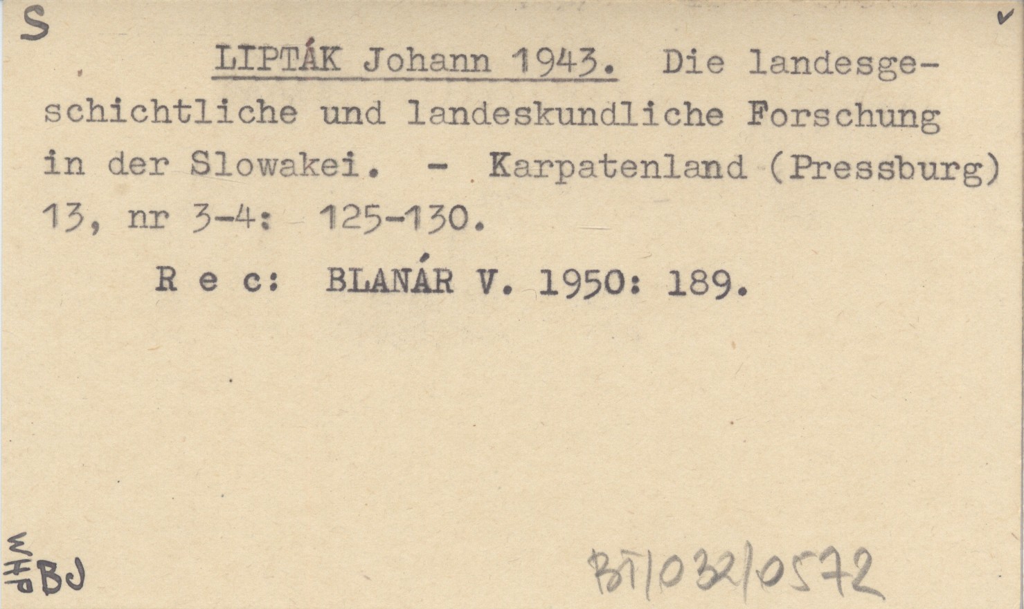 LIPTÁK Johann 1943 Die landesgeschichtliche und landeskundliche Forschung in der Slowakei.