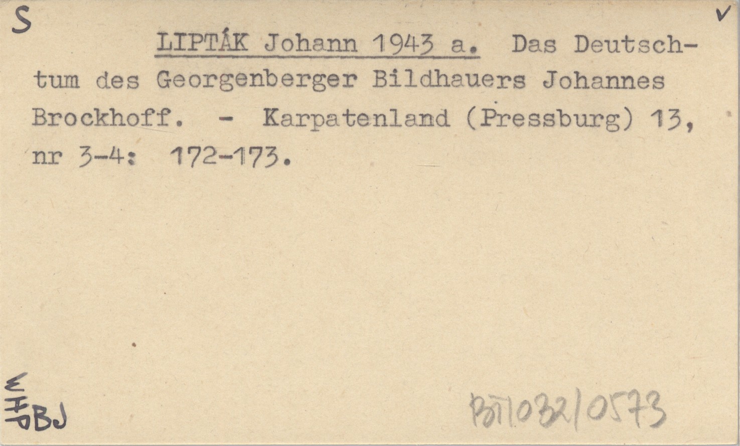 LIPTÁK Johann 1943 a Das Deutschtum des Georgenberger Bildhauers Johannes Brockhoff.