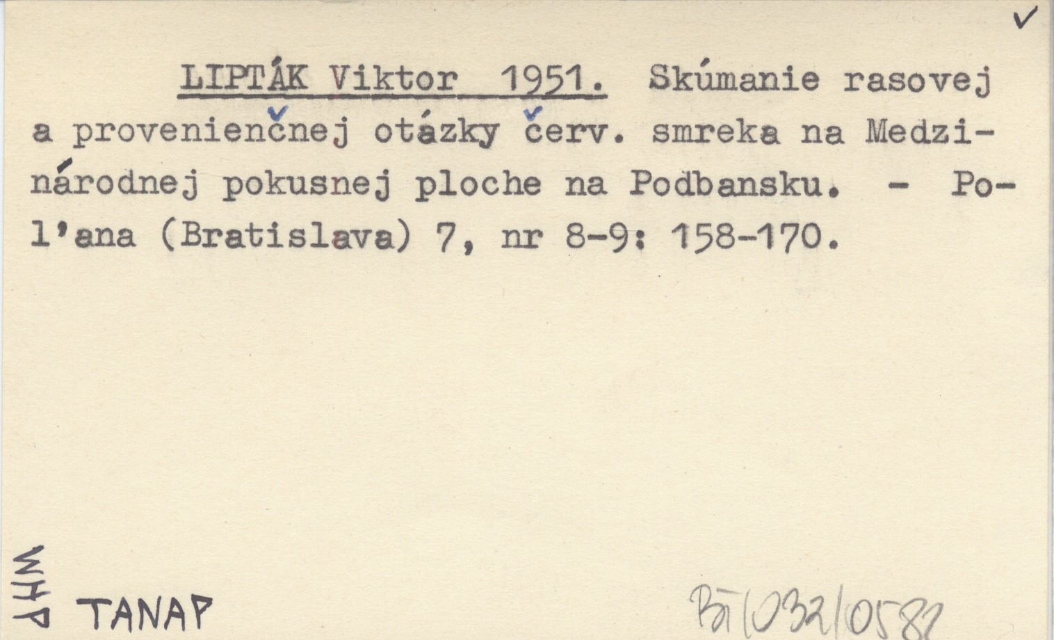 LIPTÁK Viktor 1951 Skúmanie rasovej a provenienčnej otázky červ. smreka na Medzinárodnej pokusnej ploche na Podbansku.