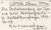 LIPTÁK Johann 1943 c Die Deutschwerdung der Zips und ihrer Nachbargebiete.