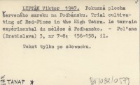 LIPTÁK Viktor 1947 Založenie pokusnych ploch červeneho smreku v praktickom lesnom hospodarstve.