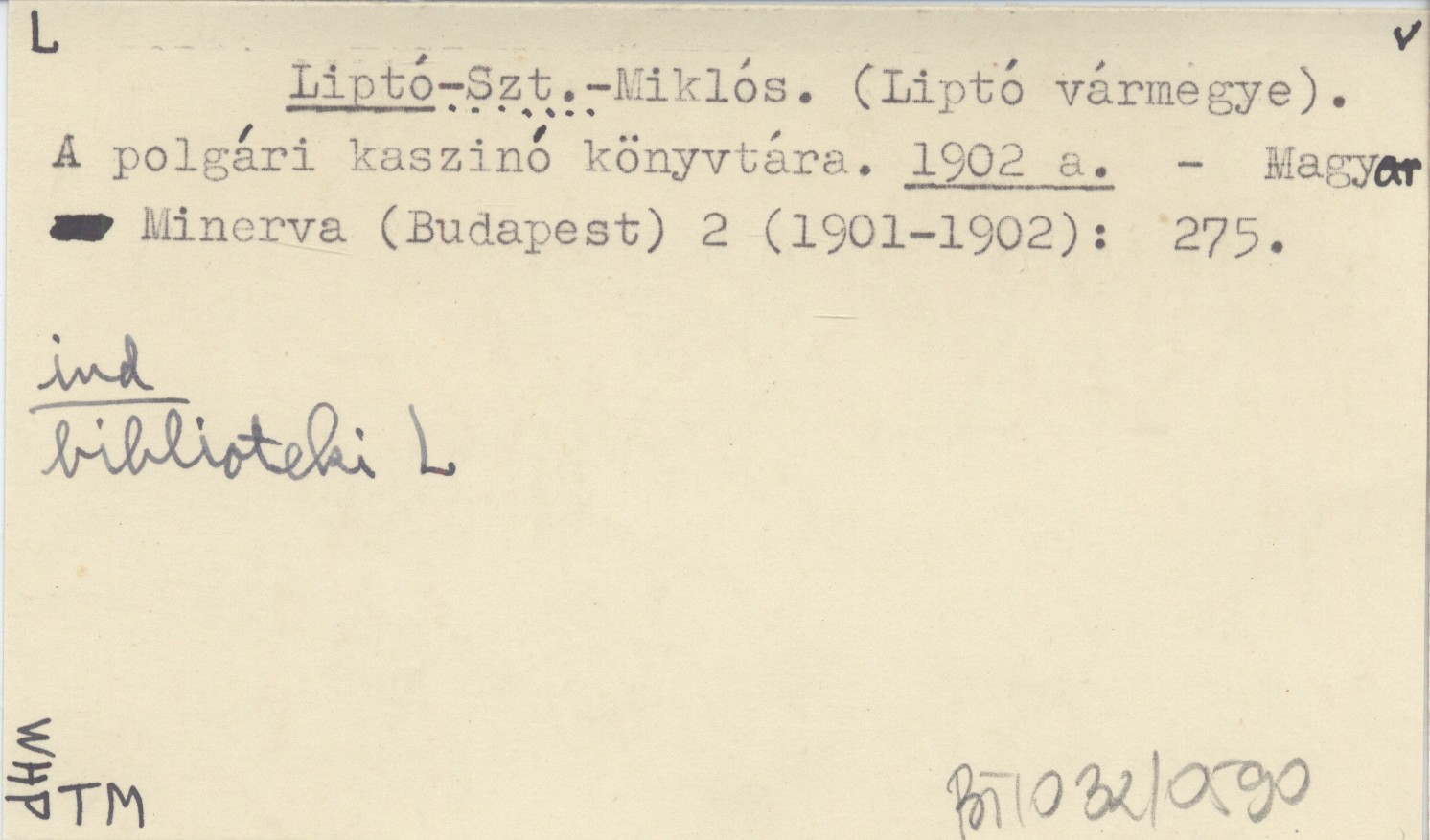Liptó-Szt.-Miklós. (Liptó vármegye). A polgári kaszinó könyvtára. 1902 a