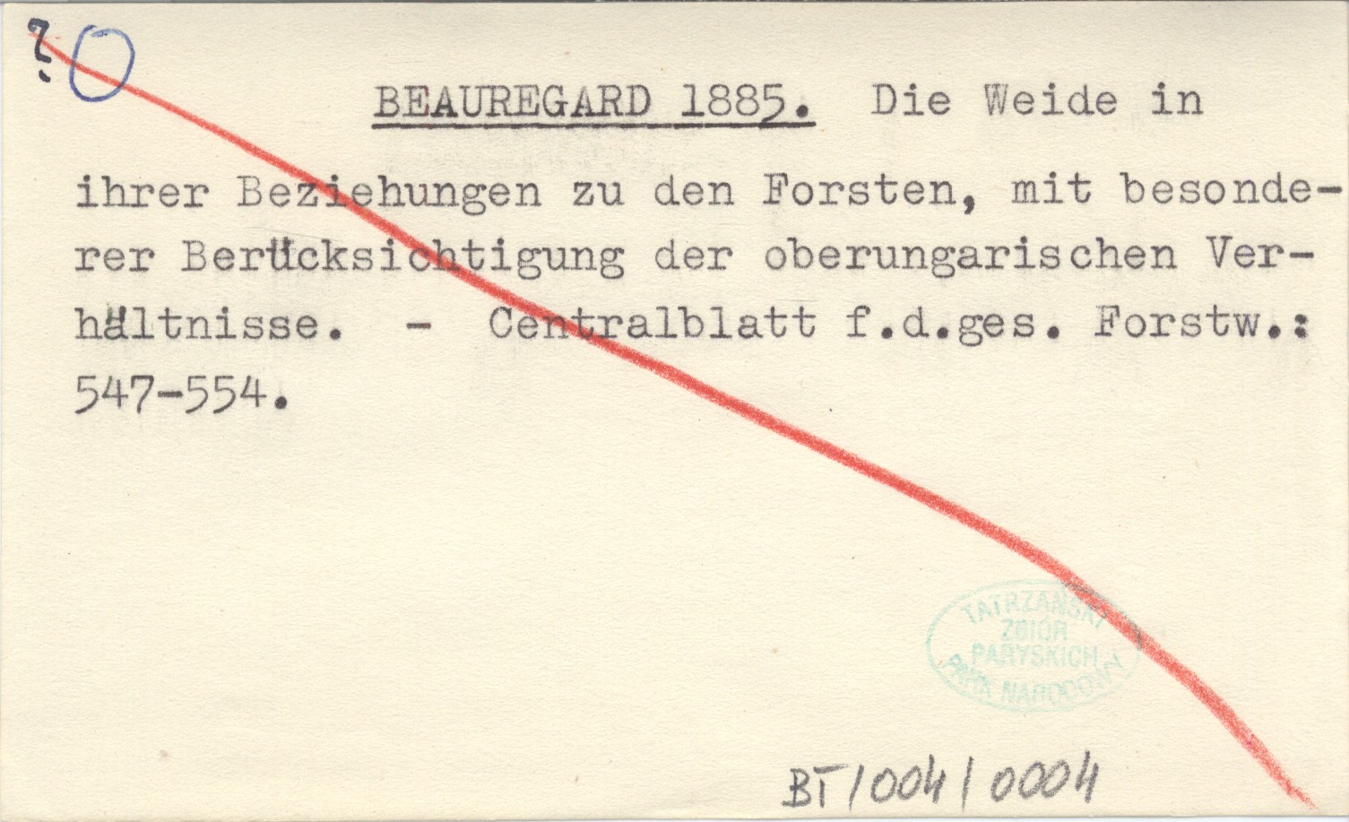 BEAUREGARD 1885 Die Weide in ihrer Beziehungen zu den Forsten, mit besonderer Berücksichtigung der oberungarischen Verhältnisse.