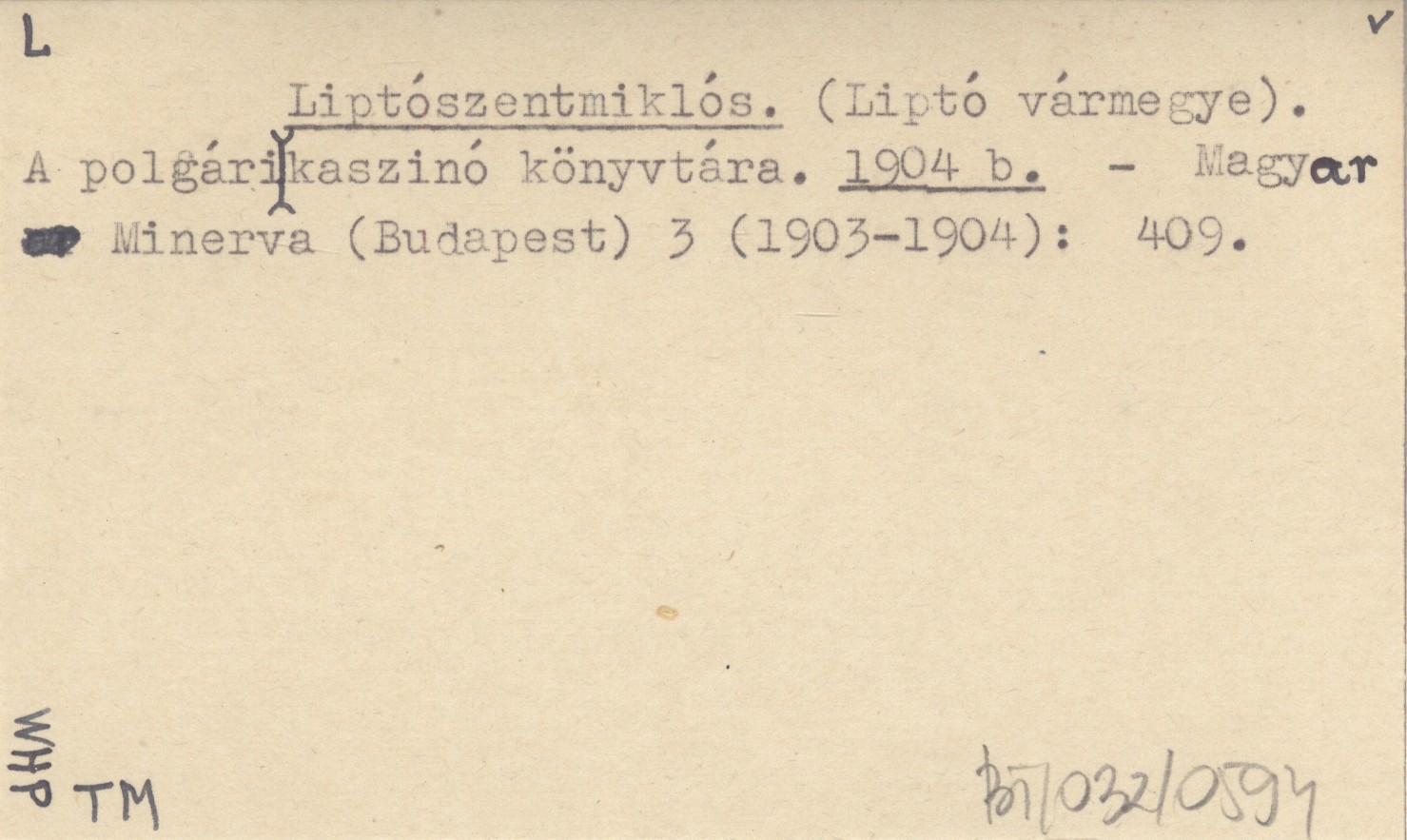 Liptószentmiklós. (Liptó vármegye). A polgári kaszinó könyvtára. 1904 b