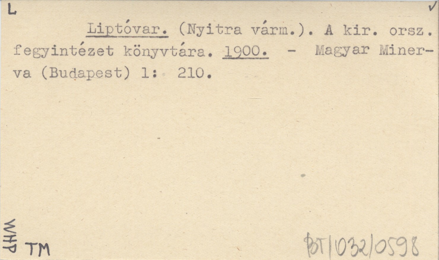 Liptóvar. (Nyitra várm.). A kir. orsz. fegyintézet könyvtára. 1900