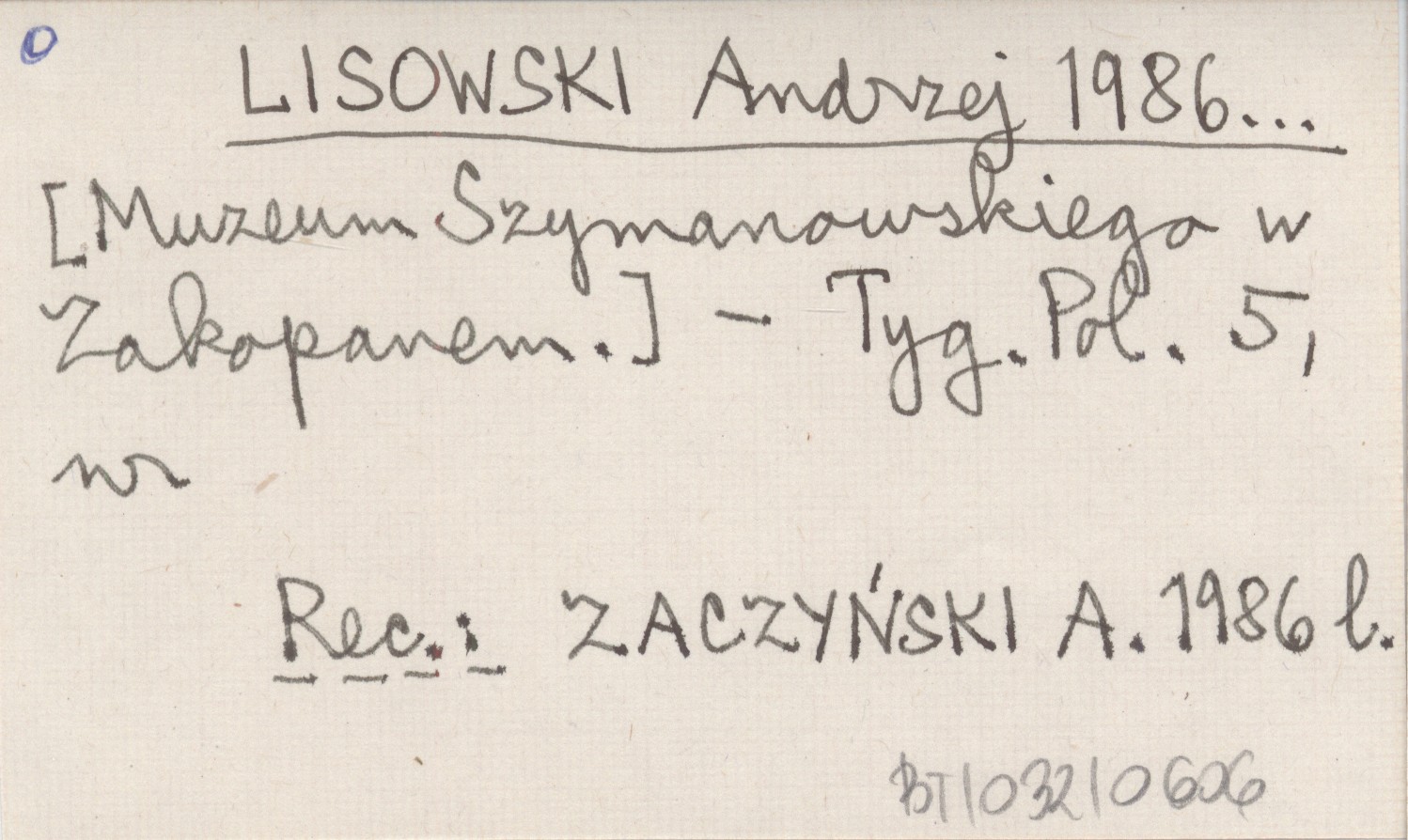 Tygodni Polski, 5. REC: ZACZYŃSKI A. 1986 l