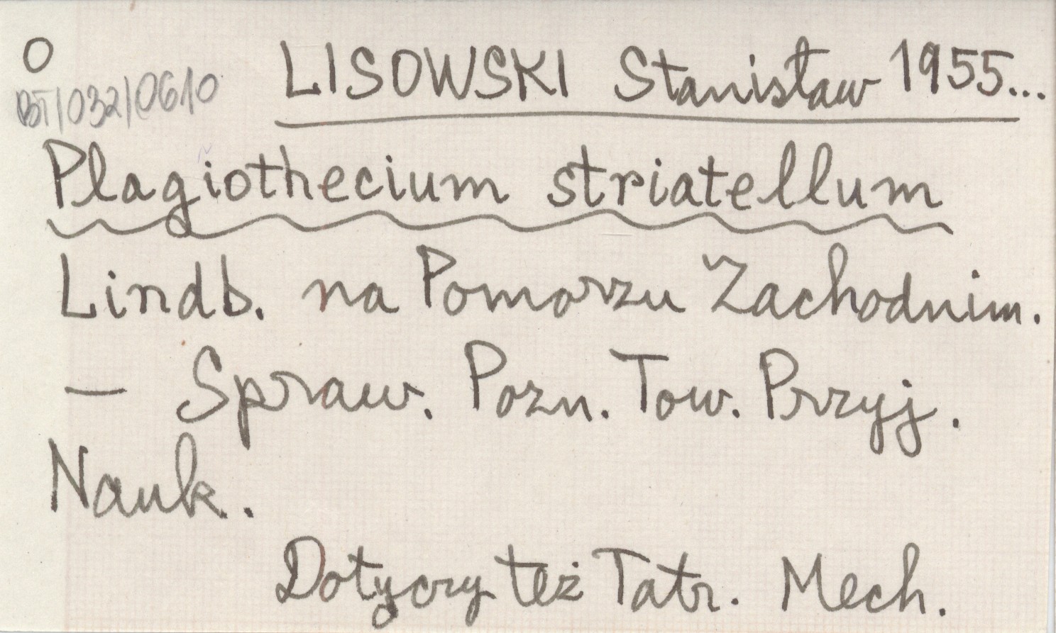 LISOWSKI Stanisław 1955... Plagiothecium striatellum Lindb. na Pomorzu Zachodnim.
