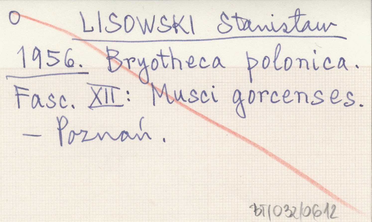 LISOWSKI Stanisław 1956 Bryotheca polonica. Fasc. XII: Musci gorcenses.