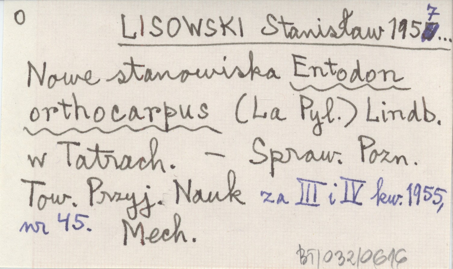 LISOWSKI Stanisław 1957... Nowe stanowiska Entodon orthocarpus (La Pyl.) Lindb. w Tatrach.