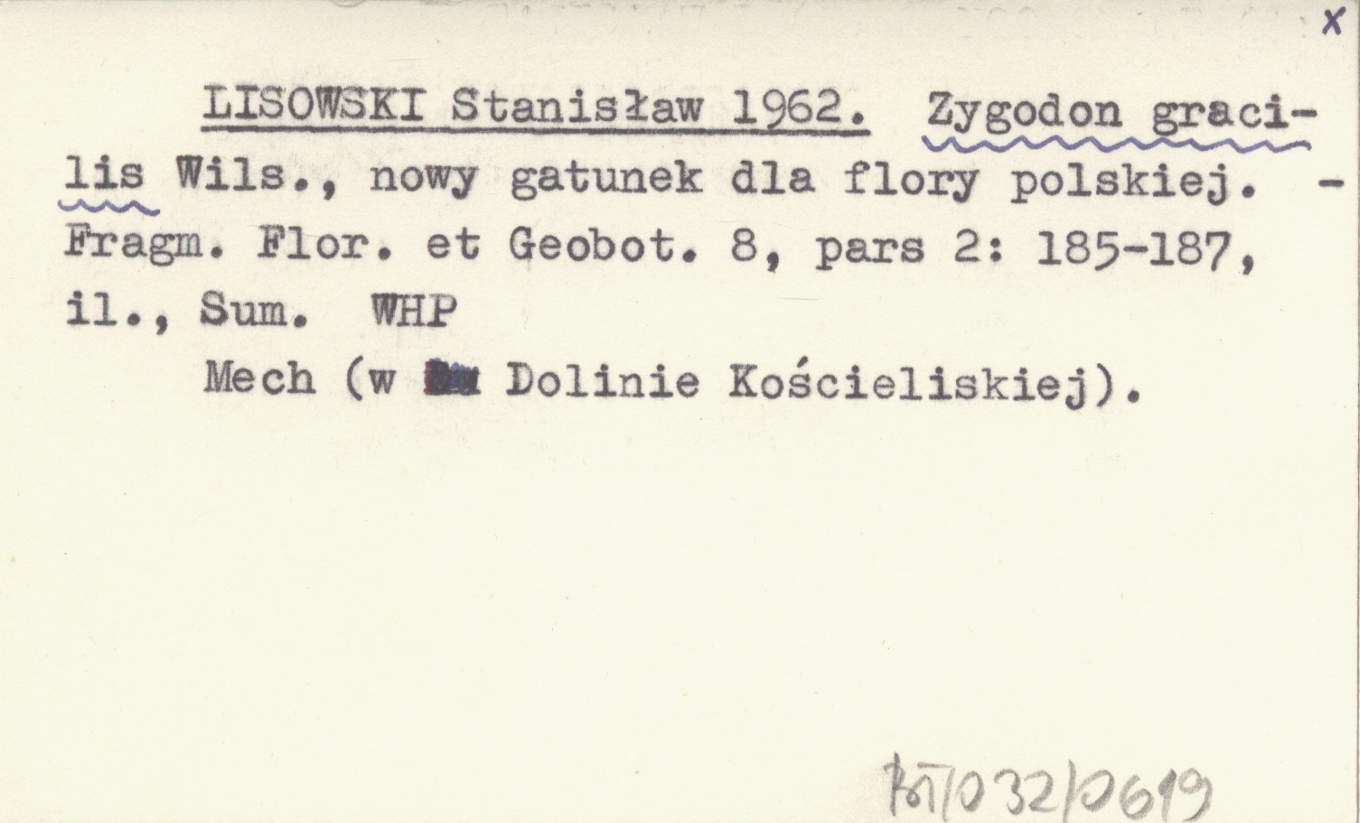 LISOWSKI Stanisław 1962 Zygodon gracilis Wils., nowy gatunek dla flory polskiej.