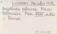 LISOWSKI Stanisław 1958... Bryotheca polonica. Musci tatrenses. Fasc. XXXI et XLI.
