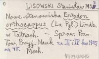 LISOWSKI Stanisław 1957... Nowe stanowiska Entodon orthocarpus (La Pyl.) Lindb. w Tatrach.
