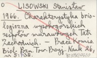 LISOWSKI Stanisław 1966 Charakterystyka briologiczna wysokogórskich zespołów murawowych Tatr Zachodnich.