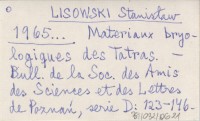 LISOWSKI Stanisław 1965... Materiaux bryologiques des Tatras.