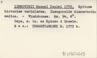 LISSOVINII Samuel Daniel 1772 Epitome historiae variolarum. Inauguralis dissertatio medica.