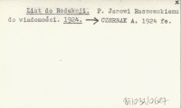 List do Redakcji. P. Janowi Raszewskiemu do wiadomości. 1924