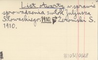 List otwarty w sprawie sprowadzenia zwłok Juljusza Słowackiego. 1910