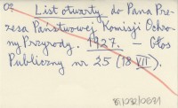 List otwarty do Pana Prezesa Państwowej Komisji Ochrony Przyrody. 1927