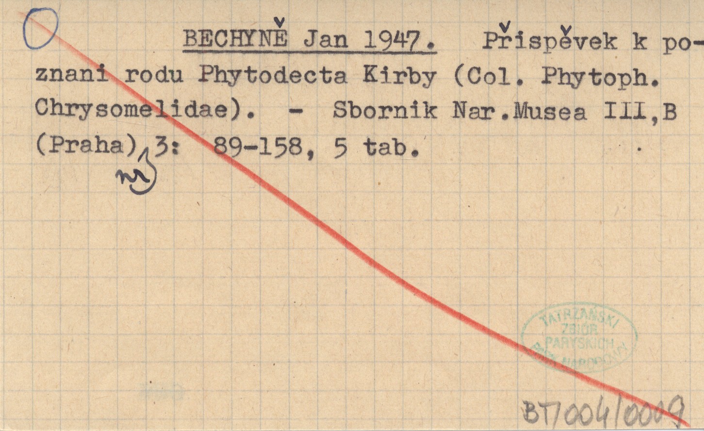 BECHYNĚ Jan 1947 Přispěvek k poznani rodu Phytodecta Kirby (Col. Phytoph. Chrysomelidae).