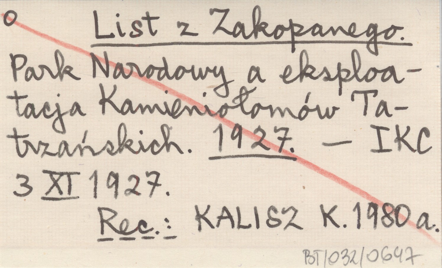 List z Zakopanego. Park Narodowy a eksploatacja Kamieniołomów Tatrzańskich. 1927