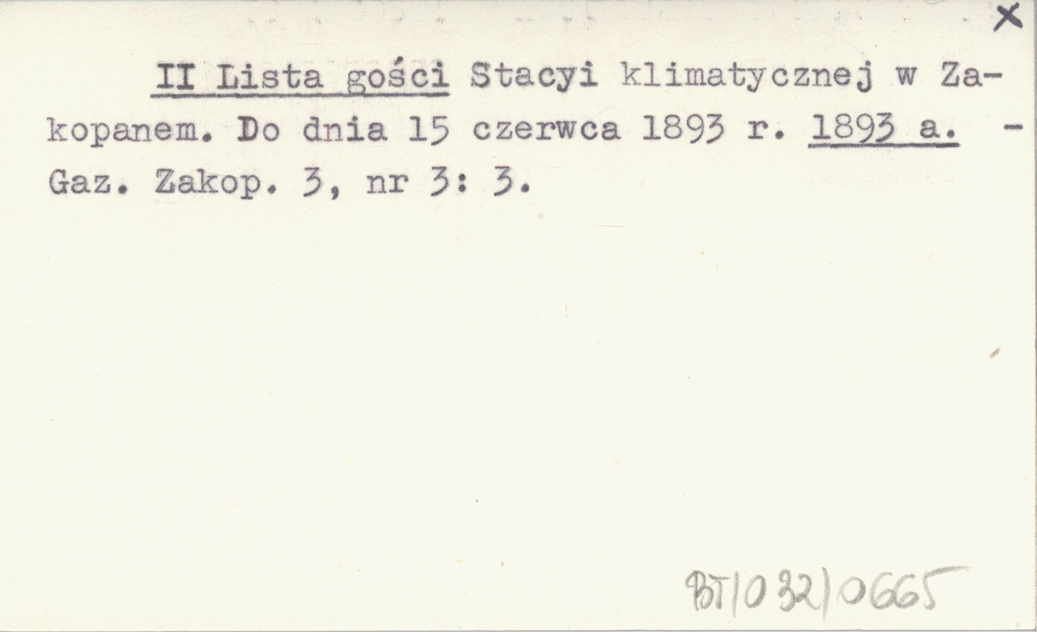 II Lista gości Stacyi klimatycznej w Zakopanem. Do dnia 15 czerwca 1893 r. 1893 a