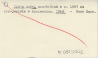 Lista gości przybyłych w r. 1863 do zdrojowiska w Szczawnicy. 1863
