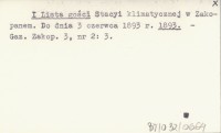 II [III!] Lista gości Stacyi klimatycznej w Zakopanem. Do dnia 15 czerwca 1893 r. 1893 b