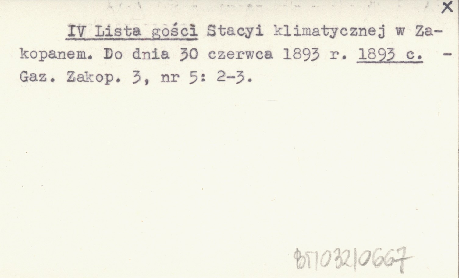 IV Lista gości Stacyi klimatycznej w Zakopanem. Do dnia 30 czerwca 1893 r. 1893 c