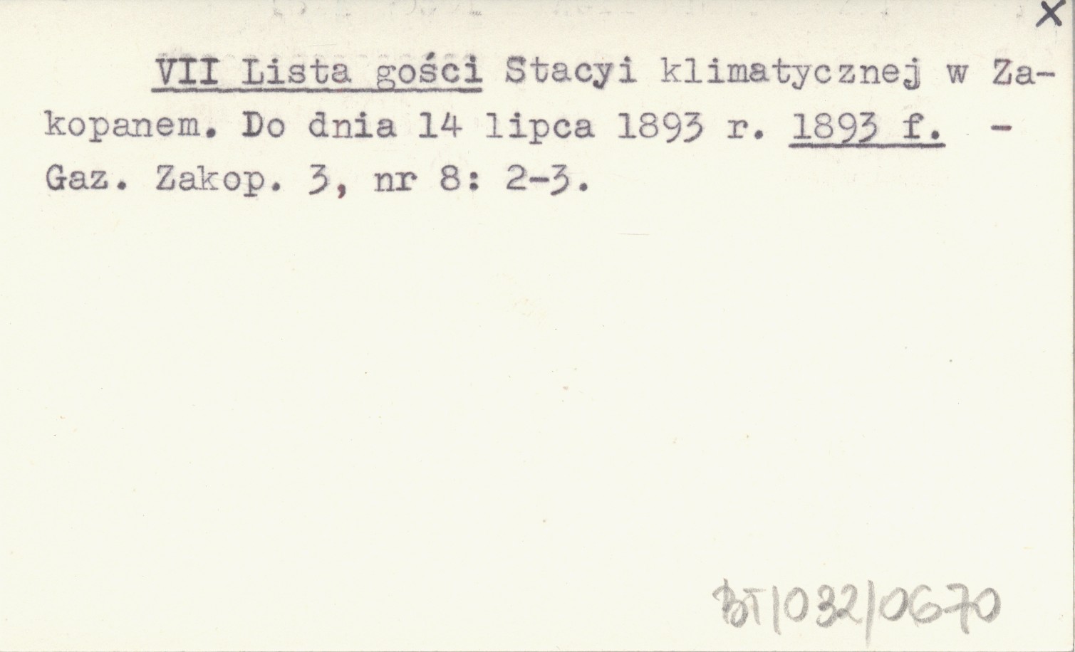 VII Lista gości Stacyi klimatycznej w Zakopanem. Do dnia 14 lipca 1893 r. 1893 f