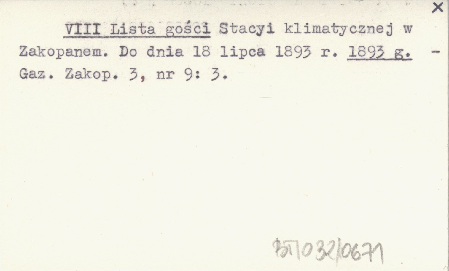 VIII Lista gości Stacyi klimatycznej w Zakopanem. Do dnia 18 lipca 1893 r. 1893 g