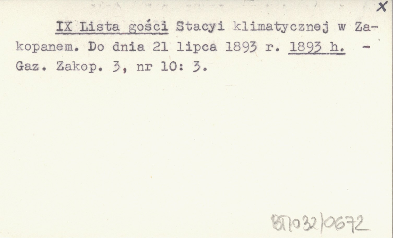 IX Lista gości Stacyi klimatycznej w Zakopanem. Do dnia 21 lipca 1893 r. 1893 h