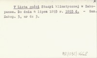 V Lista gości Stacyi klimatycznej w Zakopanem. Do dnia 4 lipca 1893 r. 1893 d