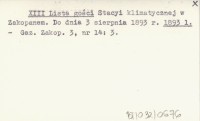 XIII Lista gości Stacyi klimatycznej w Zakopanem. Do dnia 3 sierpnia 1893 r. 1893 l