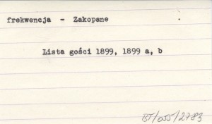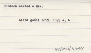 Lista gości bawiących w zakładzie Dra Chramca. 1899 b