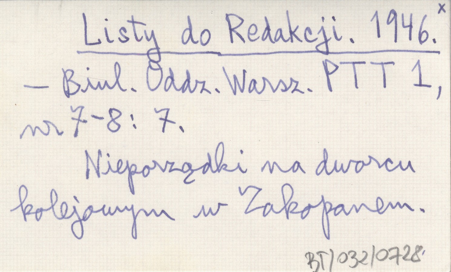 Biuletyn Oddziału Warszawskiego PTT, 1, nr 7-8: 7. Nieporządki na dworcu kolejowym w Zakopanem.