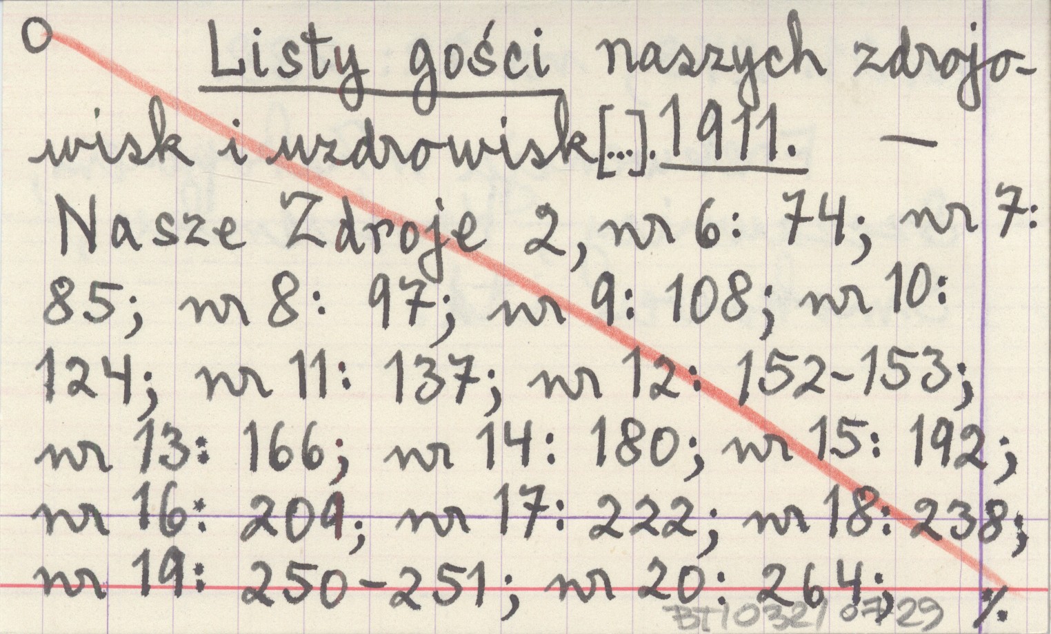 Nasze Zdroje, 2, nr 6: 74 ; nr 7: 85 ; nr 8: 97 ; nr 9: 108 ; nr 10: 124 ; nr 11: 137 ; nr 12: 152-153 ; nr 13: 166 ; nr 14: 180 ; nr 15: 192 ; nr 16: 209 ; nr 17: 222 ; nr 18: 238 ; nr 19: 250-251 ; nr 20: 264 ; nr 21: 275 ; nr 22: 288. Frekwencja w Zakopanem, Szczawnicy, Krościenku, Smokowcu itd.