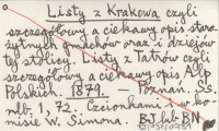 Listy z Krakowa czyli szczegółowy a ciekawy opis starożytnych gmachów oraz i dziejów tej stolicy. Listy z Tatrów czyli szczegółowy a ciekawy opis Alp Polskich. 1879