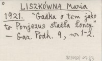 LISZKÓWNA Maria 1921 "Gadka o tem jako to Ponjezus stadła łoncy".