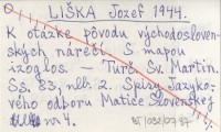 LIŠKA Jozef 1944 K otázke pôvodu východoslovenských nárečí. S mapou izoglos.