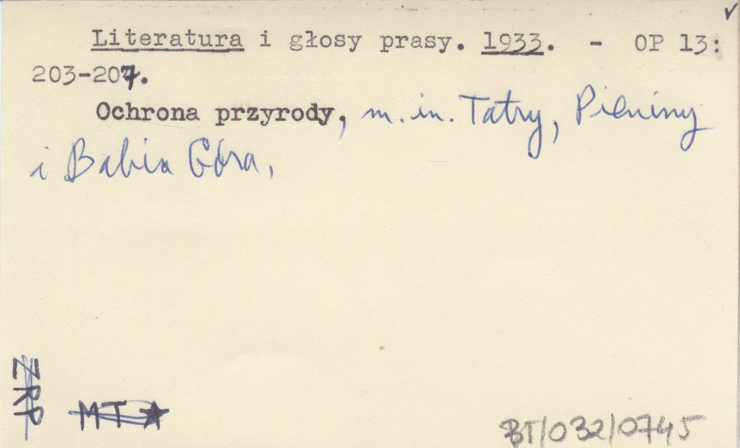 Ochrona Przyrody, 13: 203-207. Ochrona przyrody, m.in. Tatry, Pieniny i Babia Góra.