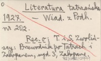 Projekt Digitalizacja fiszek z Bibliografi± Tatr i Podtatrza Witolda Henryka Paryskiego jest finansowany ze ¶rodków Ministra Kultury i Dziedzictwa Narodowego oraz Tatrzañskiego Parku Narodowego.