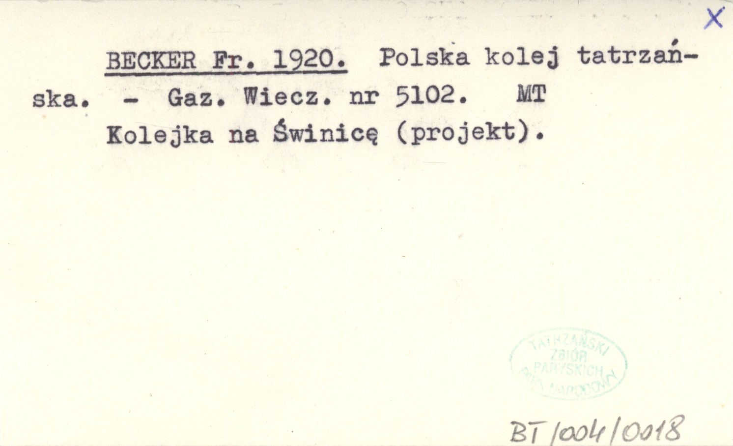 Gazeta Wieczorna, Nr 5102. Kolejka na Świnicę (projekt).