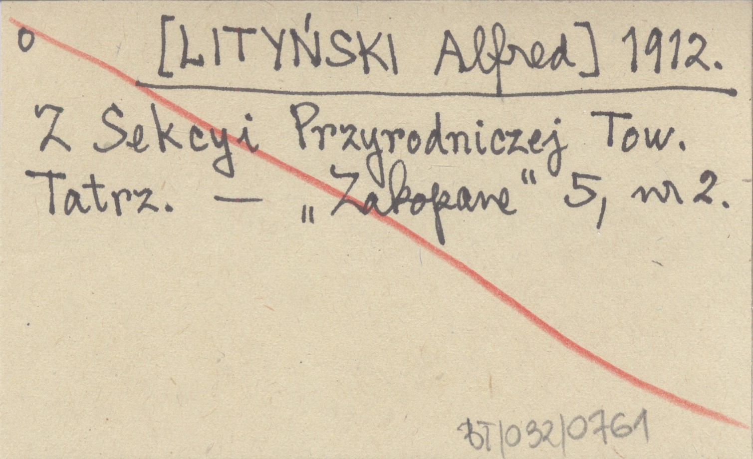 [LITYŃSKI Alfred] 1912 Z Sekcyi Przyrodniczej Tow. Tatrz.