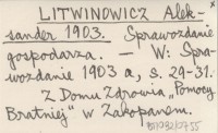 LITWINOWICZ Aleksander 1903 Sprawozdanie gospodarza.