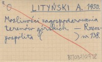 LITYŃSKI A. 1950 Możliwości zagospodarowania terenów górskich.