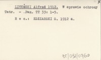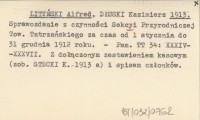 [LITYŃSKI Alfred] 1912 Z Sekcyi Przyrodniczej Tow. Tatrz.