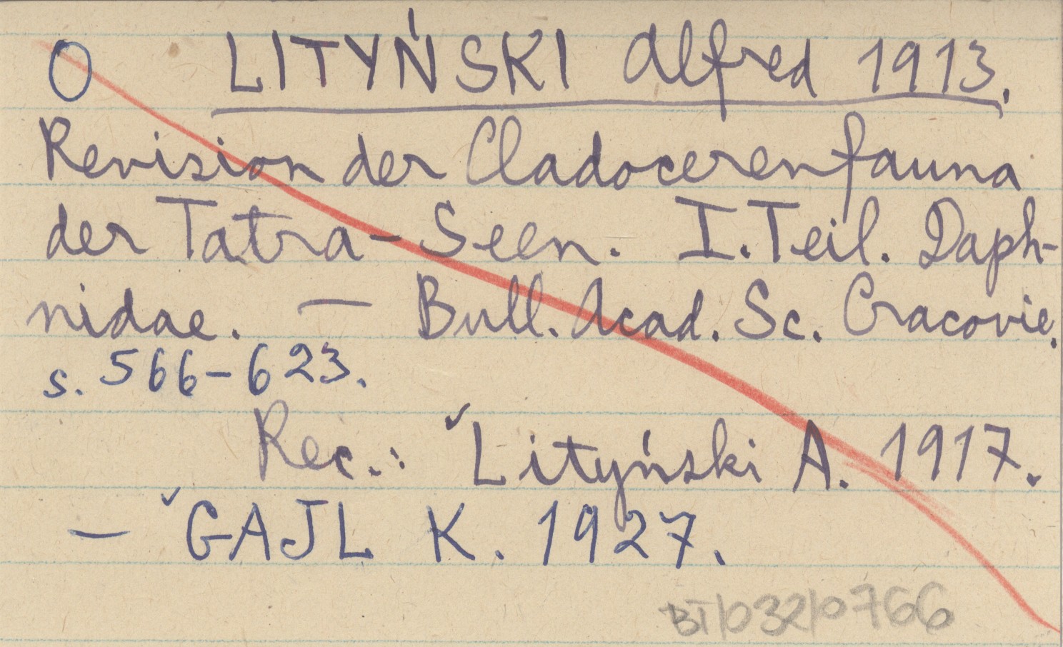 LITYŃSKI Alfred 1913 Revision der Cladocerenfauna der Tatra-Seen. I.Teil. Daphnidae.